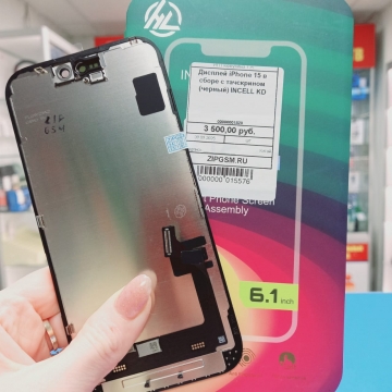 Дисплей iPhone 15 в сборе с тачскрином (черный) INCELL KD