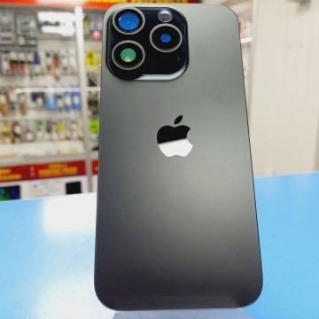Задняя крышка корпуса iPhone 15 Pro Max со стеклом камеры (стекло, логотип) (титан серый) с креплением, кольцо Magsafe, Оригинал